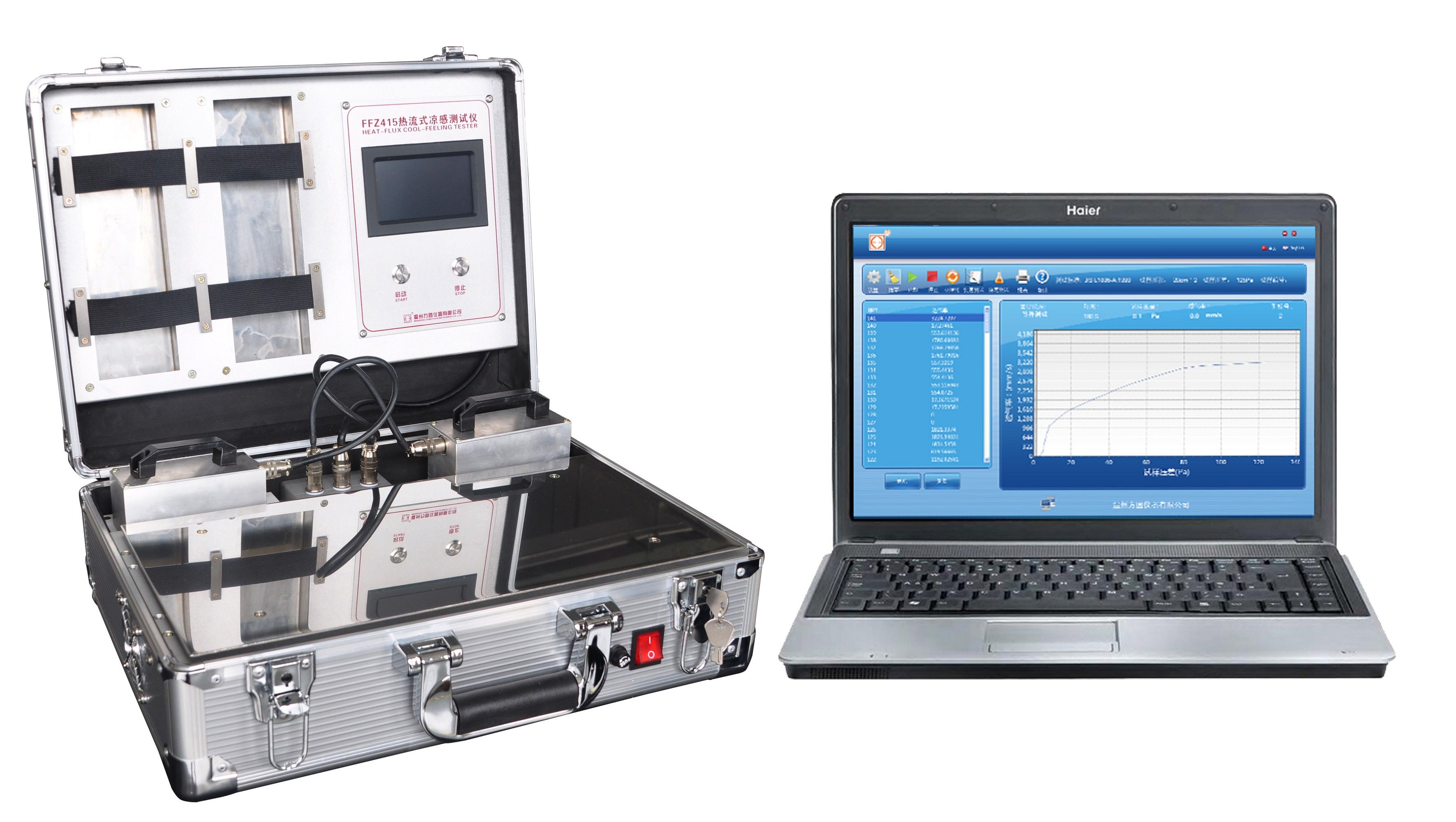 涼感制品越來(lái)越多,其質(zhì)量檢測(cè)刻不容緩。我公司根據(jù)CN201510574661.X-熱流式織物涼感測(cè)試設(shè)備及測(cè)試方法,自主研發(fā)的FFZ415熱流式?jīng)龈袦y(cè)試儀,可對(duì)織物接觸瞬間涼感Qmax值進(jìn)行測(cè)試,又可對(duì)織物持續(xù)散熱值進(jìn)行測(cè)量。反映各類涼感材料綜合的散熱性能。